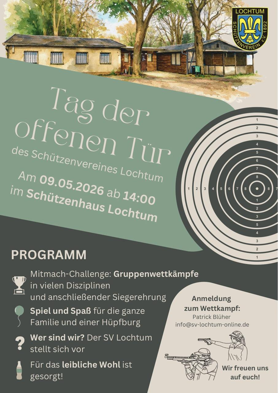 der Schützenverein Lochtum veranstaltet am 09.05.2026 einen Tag der offenen Tür.
