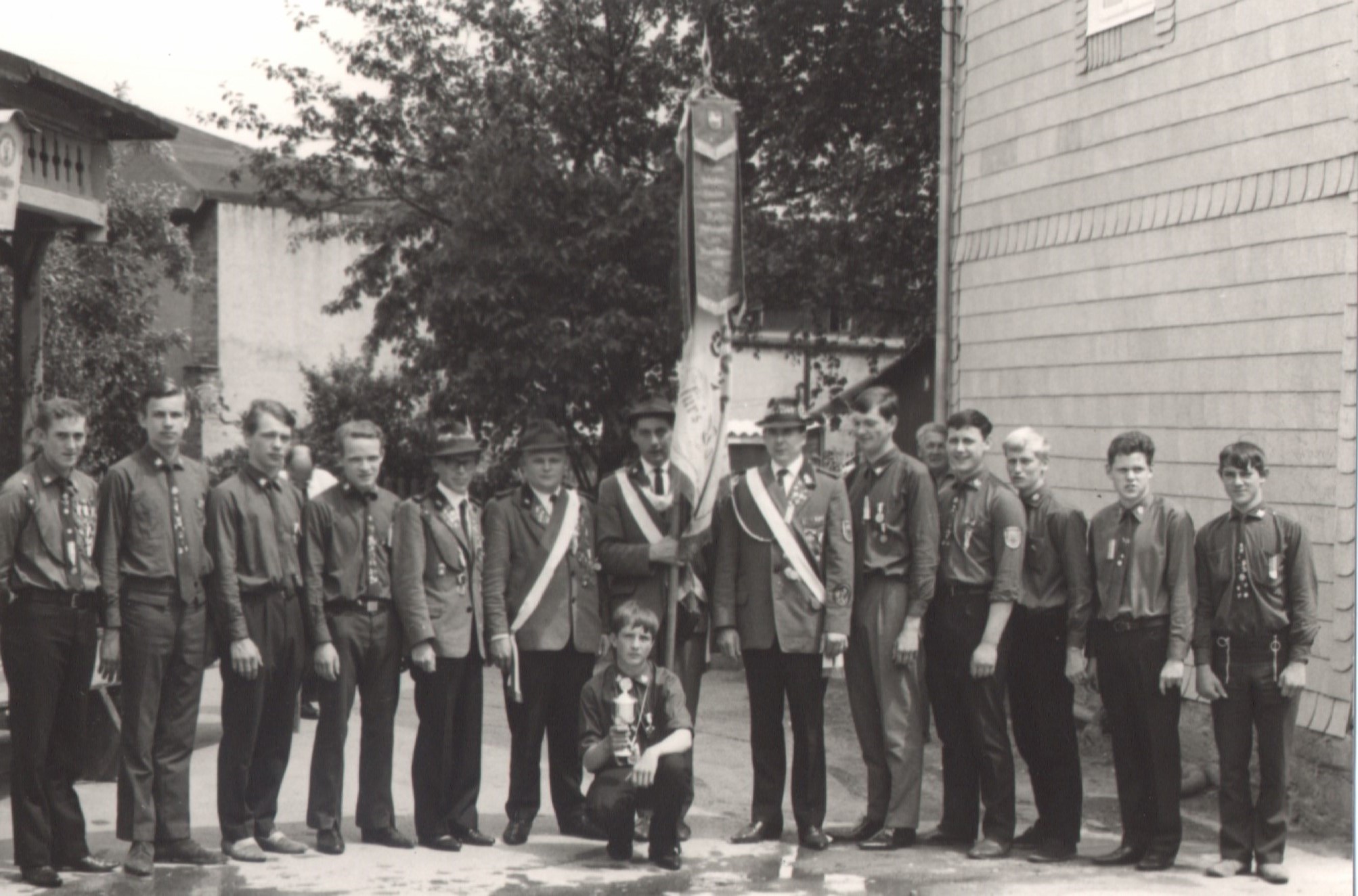 Die Jugendabteilung mit Fahnenrotte und König Hans-Joachim Strümpel (kniend)